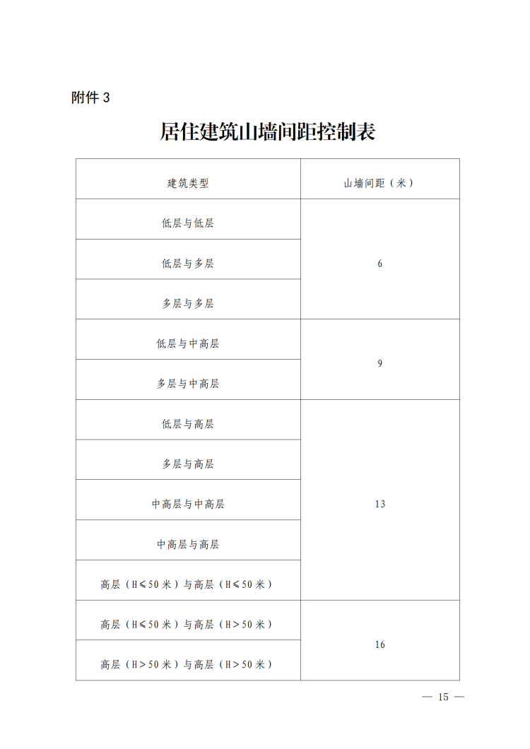 七、居住建筑山墙间距应符合最小距离的规定(见附件3)。