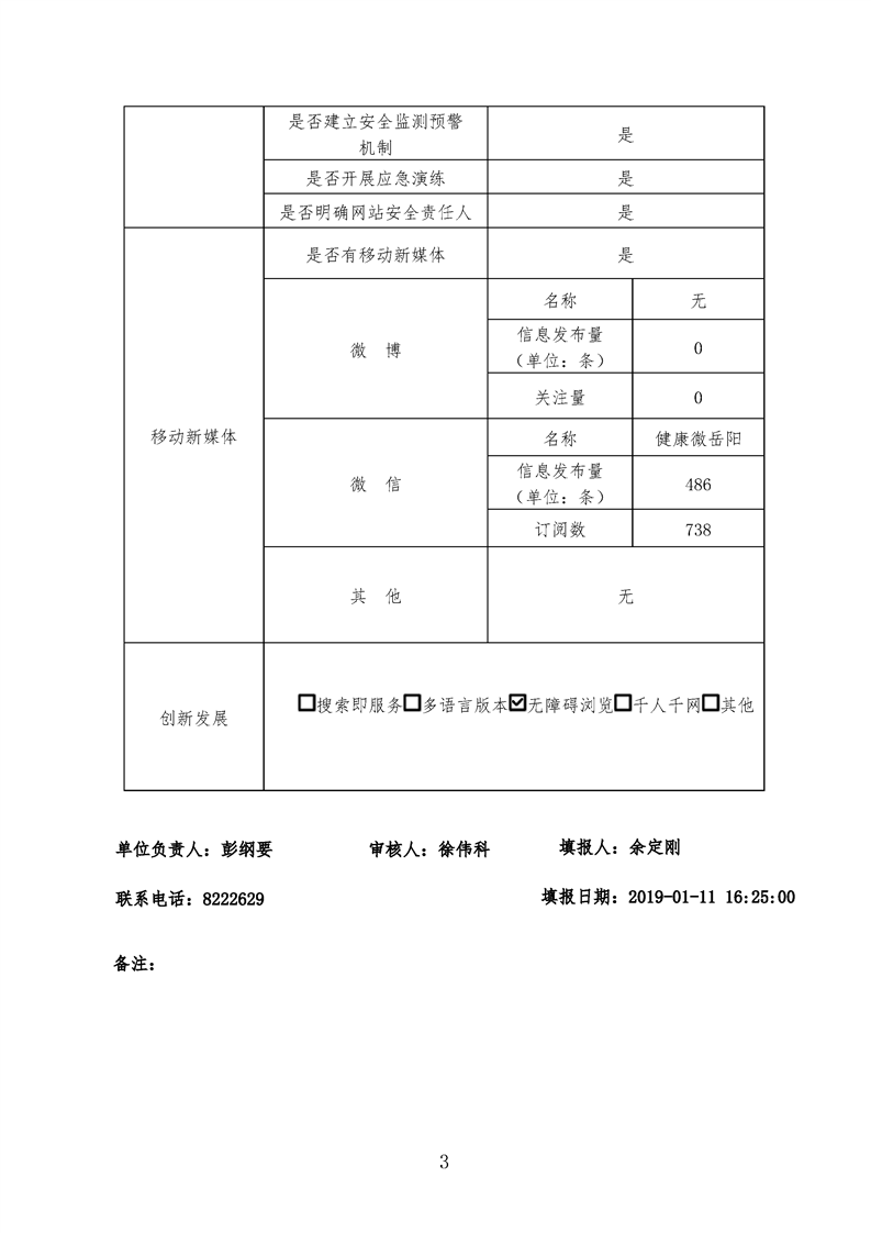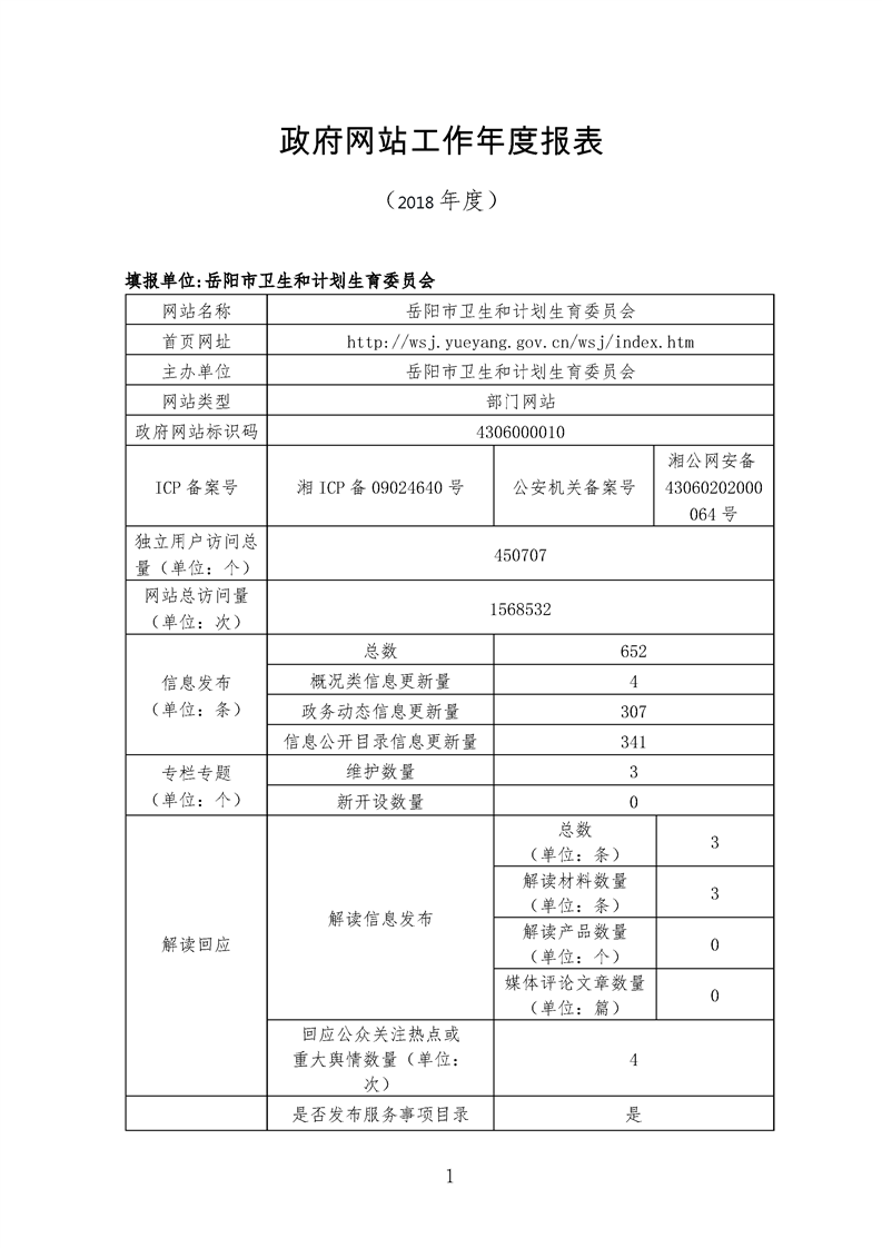 岳阳市卫生和计划生育委员会网站工作2018年度报表
