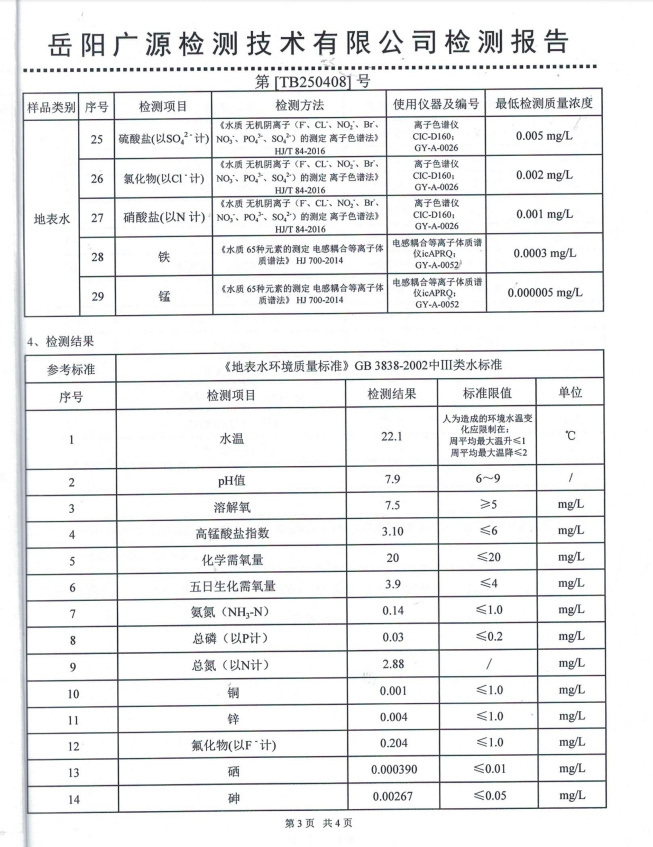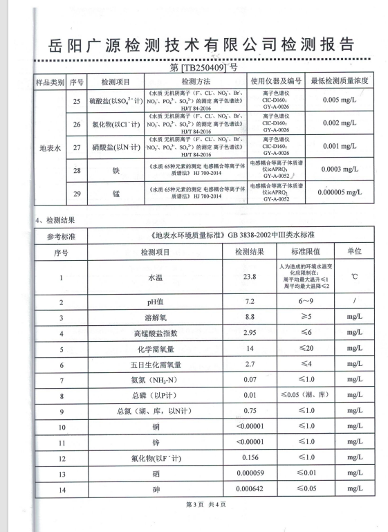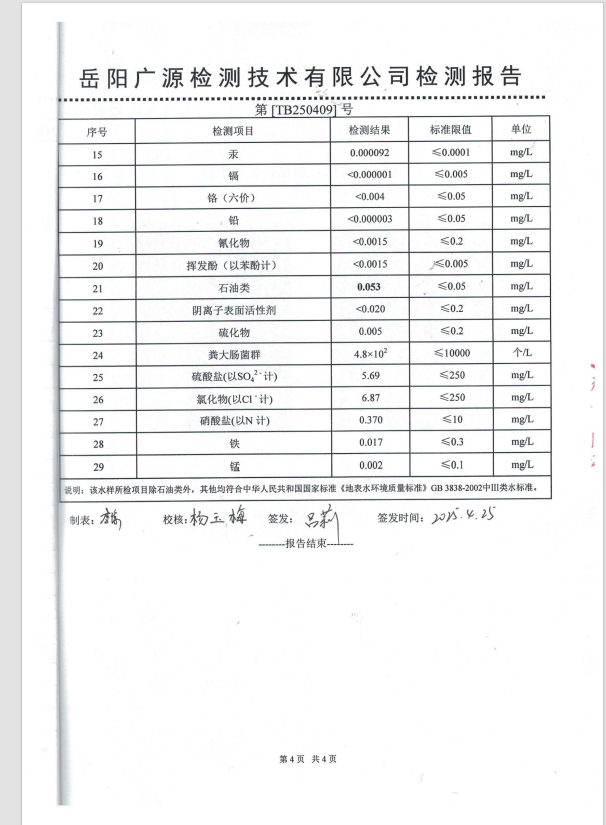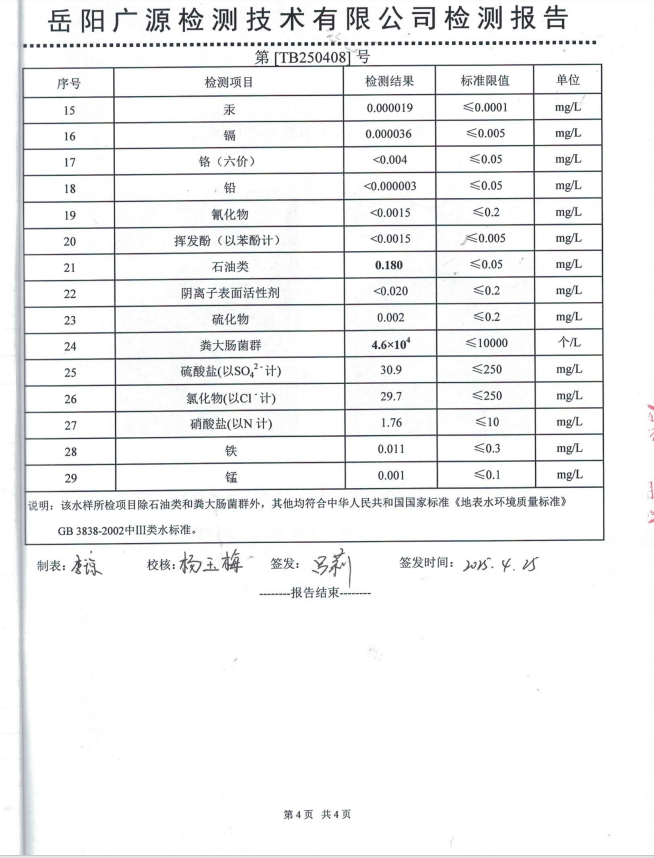 2025年4月岳阳市水务集团水源水水质检测月报表