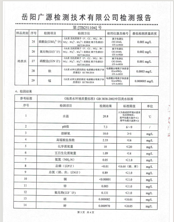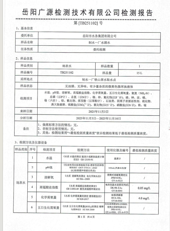 2025年11月岳阳市水务集团水源水水质检测月报表