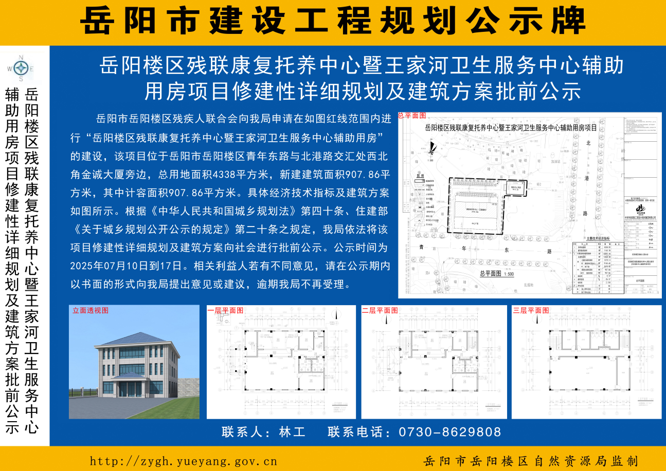 岳阳楼区残联康复托养中心暨王家河卫生服务中心辅助用房项目修建性详细规划及建筑方案批前公示