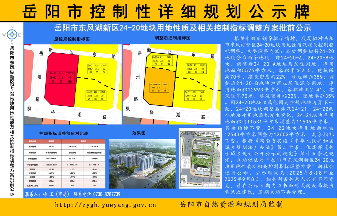 岳阳市东风湖新区24-20地块用地性质及相关控制指标调整方案批前公示