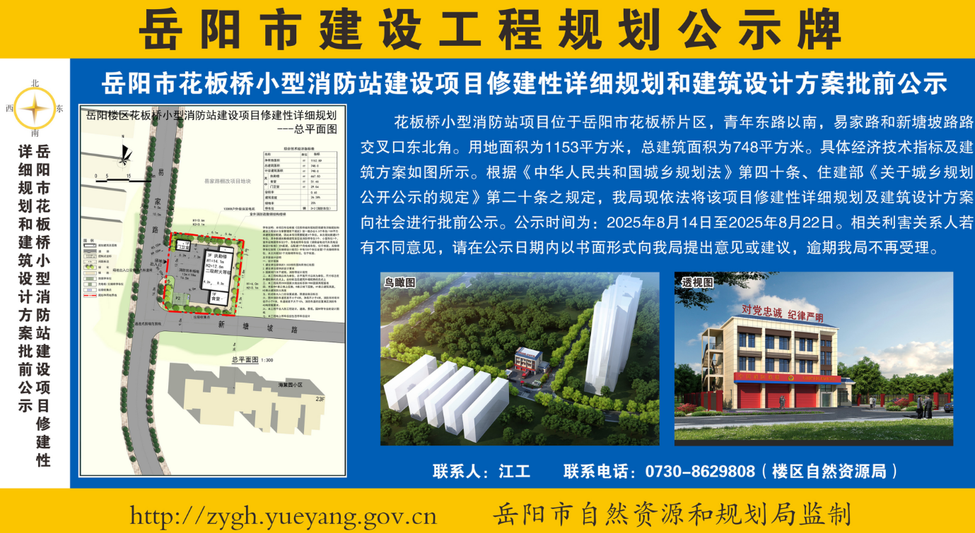 岳阳市花板桥小型消防站建设项目修建性详细规划和建筑设计方案批前公示