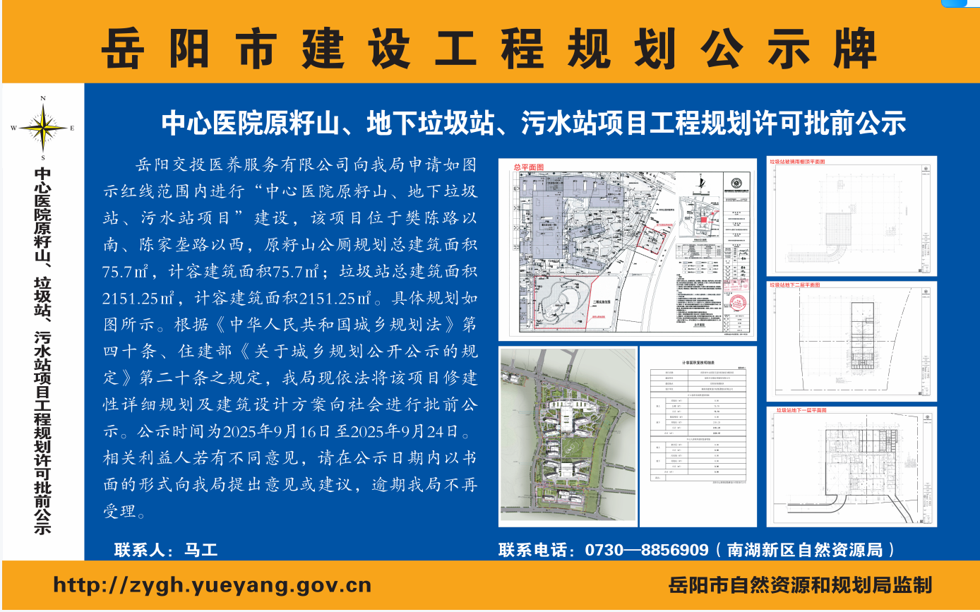 中心医院原籽山、地下垃圾站、污水站项目工程规划许可批前公示