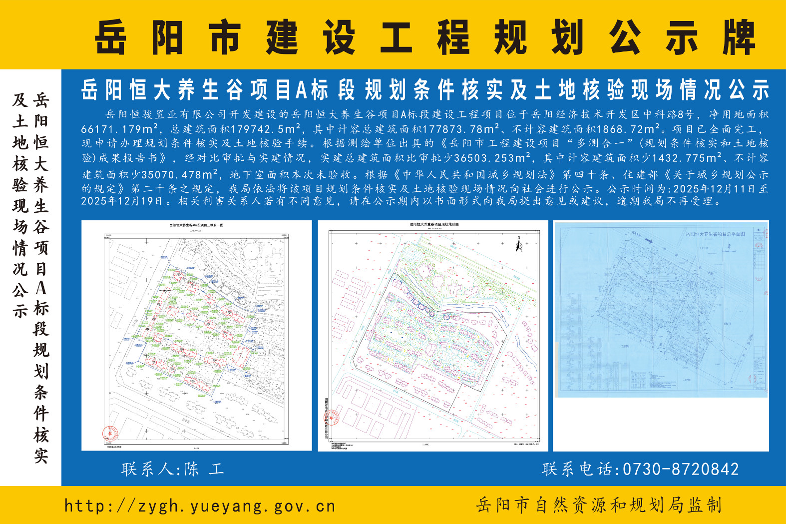 岳阳恒大养生谷项目A标段规划条件核实及土地核验现场情况公示