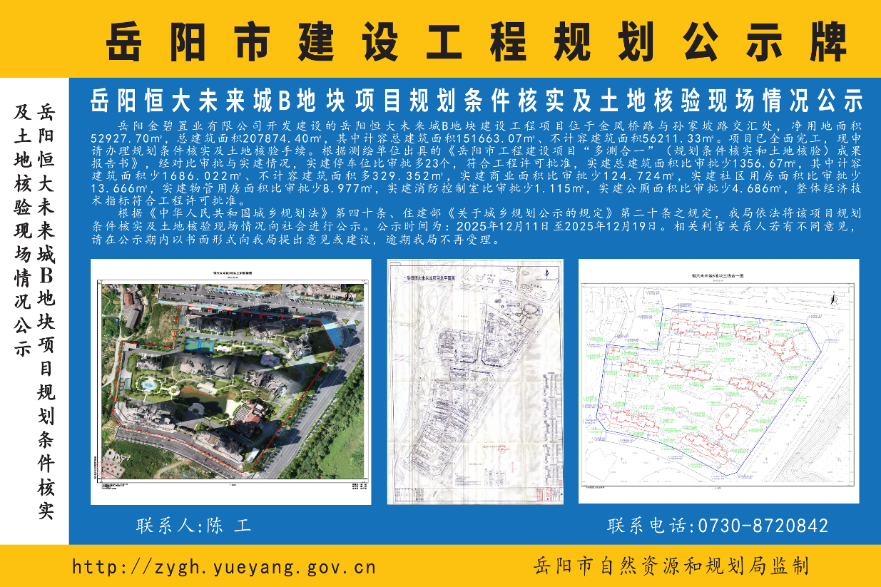 岳阳恒大未来城B地块项目规划条件核实及土地核验现场情况公示