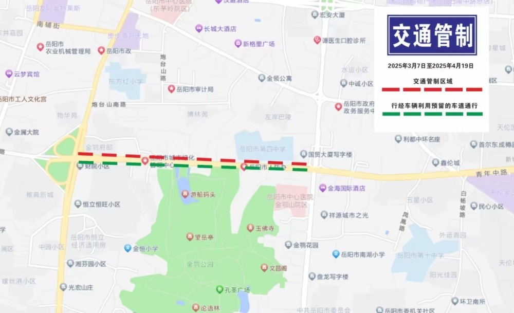 关于岳阳大道、建湘路、青年西路部分路段实行交通管制的通告