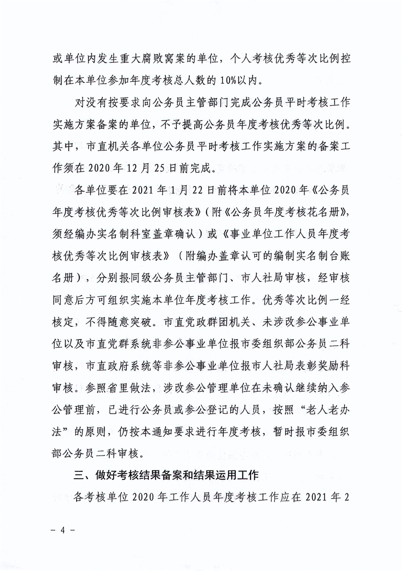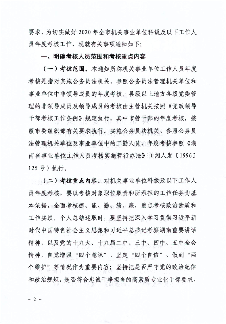 关于做好2020年机关事业单位科级及以下工作人员年度考核工作的通知