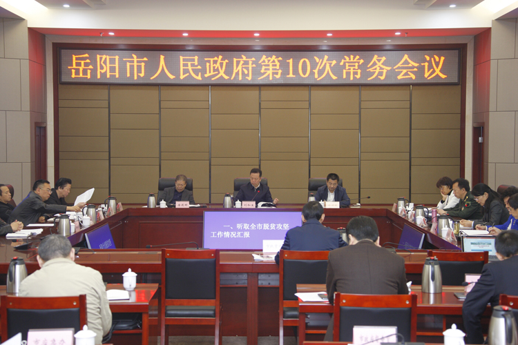 昨天上午,市长刘和生主持召开市政府第10次常务会议,研究推进脱贫攻坚、交通建设大会战重点项目建设、促进房地产市场平稳健康发展等工作。市级领导徐新楚、向伟雄、唐道明、胡小闽、陈奇达、吴晓波、李为、黎作凤、杨昆、邱虹、李可波、刘晓英、张益民,市政府秘书长刘传汉等参加。