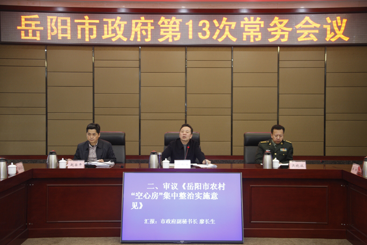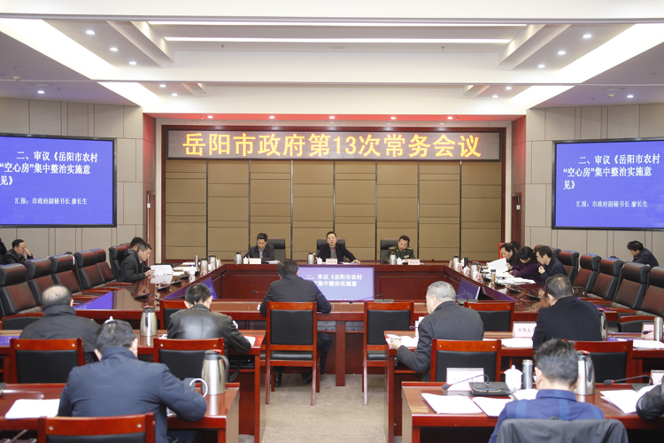 昨天,市长刘和生主持召开市政府第13次常务会议,听取2018年市政府重点工作任务分解情况汇报,听取主城区临街产权单位内部停车场对外开放工作情况汇报等,审议《岳阳市农村“空心房”集中整治实施意见》等。