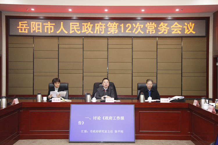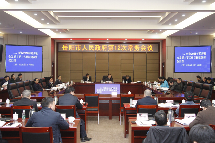 昨天下午,市长刘和生主持召开市政府第12次常务会议,讨论《政府工作报告》(征求意见稿),听取2018年经济社会发展主要工作目标建议情况汇报,审议《岳阳市2018-2020年棚户区改造计划项目库》等。