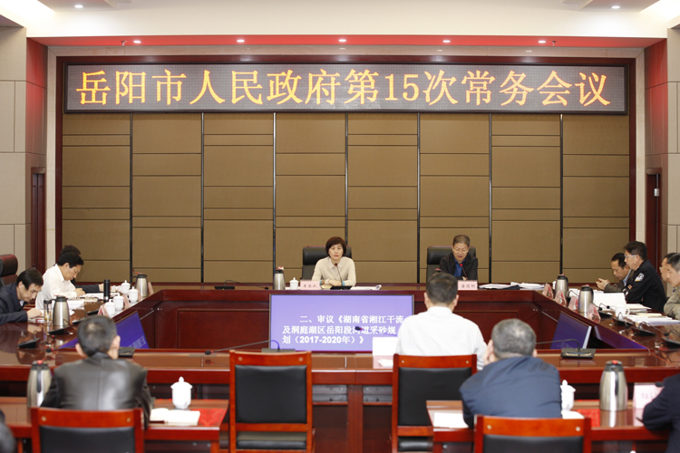 昨天下午,市长李爱武主持召开市政府第15次常务会议,传达省委书记、省人大常委会主任杜家毫在岳调研座谈会精神,审议《湖南省湘江干流及洞庭湖区岳阳段河道采砂规划(2017-2020年)》、《岳阳市人民政府2018年立法计划》,听取市中心城区污水、管网现状及整治行动方案情况汇报,听取禁毒工作情况汇报等。