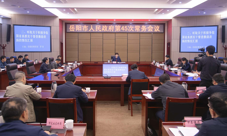 11月5日上午,市委副书记、市长李爱武主持召开市政府第45次常务会议,学习传达党的十九届五中全会精神,听取关于积极争取国省真抓实干督查激励表扬、全市禁毒工作、关于创建长江经济带绿色发展示范区、关于设立岳阳市物流产业发展引导基金、关于市中心医院和公共卫生医疗中心项目立项审定的情况汇报等。