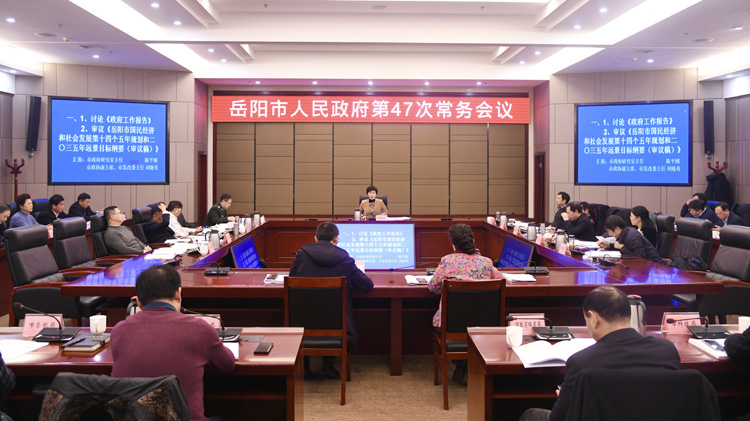 1月6日下午,市委副书记、市长李爱武主持召开市政府第47次常务会议,讨论《政府工作报告》,审议《岳阳市国民经济和社会发展第十四个五年规划和2035年远景目标纲要》,听取市主城区共享电动助力自行车引进、湖南理工学院南湖学院转设暨岳阳学院筹建、京广铁路岳阳城区段东移、关于以特许经营方式推进“智慧医疗”项目建设、规范成品油流通市场秩序等工作情况汇报。