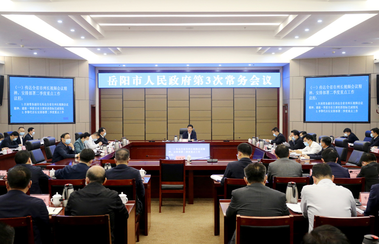 4月21日,市委副书记、代市长李挚主持召开市政府第3次常务会议,传达贯彻全省市州长视频会议精神,通报一季度全市主要经济指标完成情况,安排部署二季度重点工作。市级领导汪涛、李建华、李劲松、陈阁辉、黄伟雄、魏淑萍、张世愚、谢春生,市政府秘书长孙志诚参加。