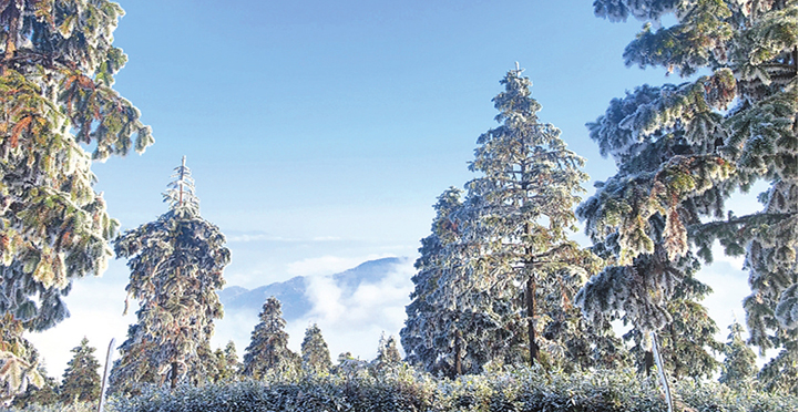 连云山雾凇“上妆”森林公园变“琉璃仙境”