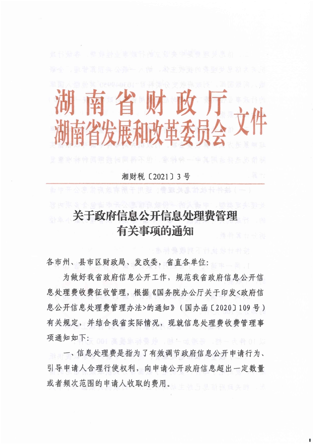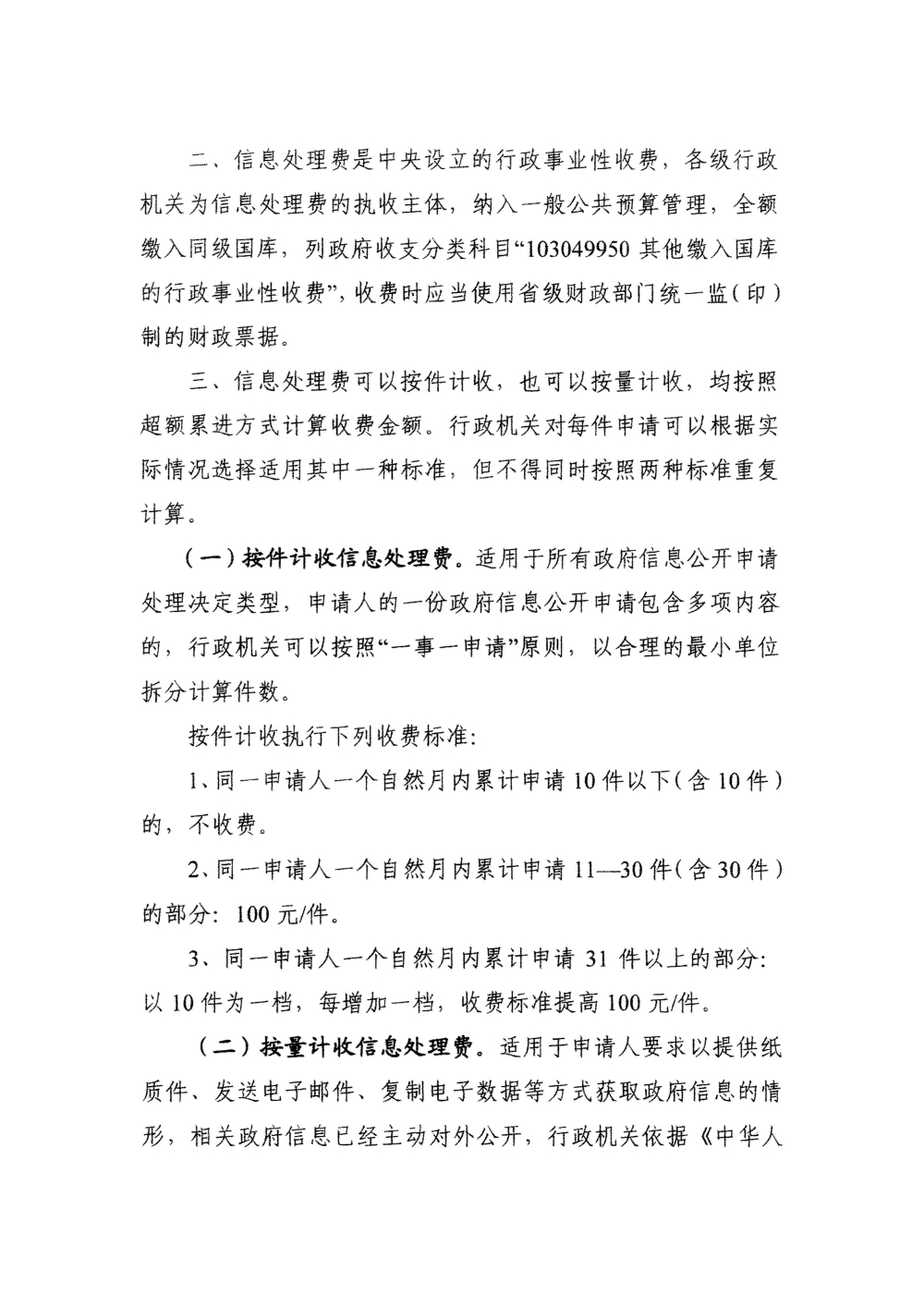 关于政府信息公开信息处理费管理有关事项的通知