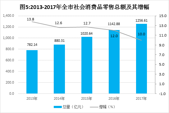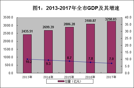 城乡居民收入继续增加。2017年全市城镇居民人均可支配收入30009元,比上年增长8.9%。农村居民人均可支配收入14265元,比上年增长8.7%。全市居民人均消费支出17229元,比上年增长8.2%。按常住地分,城镇居民人均消费支出20808元,增长7.5%;农村居民人均消费支出13033元,增长8.2%。