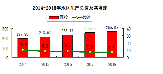 初步核算,全市地区生产总值266.58亿元,比上年增长7.5%。其中,第一产业增加值27.98亿元,增长3.1%;第二产业增加值126.91亿元,增长7.4%;第三产业增加值111.69亿元,增长9.9%。