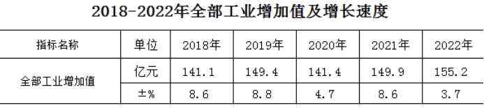 据初步核算,全部工业实现增加值155.24亿元,同比增长6.4%。其中规模以上工业企业增加值同比增长6.5%,高新技术产业园区规模工业增加值同比增长6.1%。分产业看生物医药、建筑建材、农副产品加工业总产值同比增长13.5%、8.0%、8.3%;机械制造工业总产值同比下降4.7%。全年规模以上工业企业实现利润同比下降6.9%。