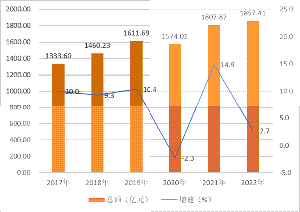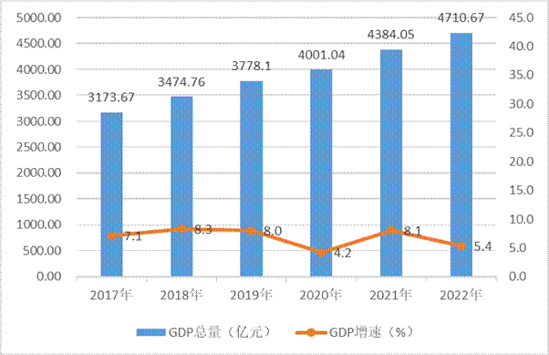 图1 2017-2022年GDP总量与增速