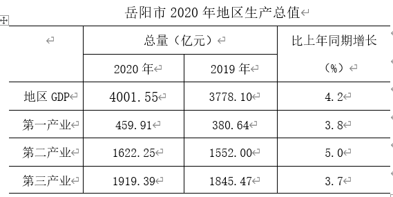 根据地区生产总值统一核算结果,2020年,全市地区生产总值为4001.55亿元,按可比价格计算,同比增长4.2%。分产业看,第一产业增加值459.91亿元,增长3.8%;第二产业增加值1622.25亿元,增长5.0%;第三产业增加值1919.39亿元,增长3.7%。