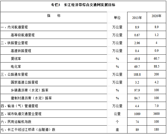 到2020年,建成横贯东西、沟通南北、通江达海、便捷高效的长江经济带综合立体交通走廊。