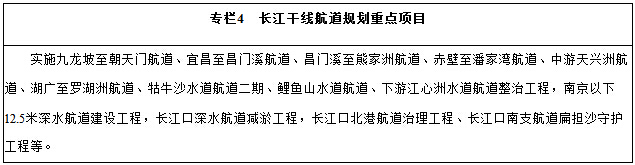 (一)全面推进长江干线航道系统化治理。加快实施重大航道整治工程,充分利用航道自然水深条件和信息化技术,进一步提升干线航道通航能力。下游重点实施12.5米深水航道延伸至南京工程;中游重点实施荆江河段航道整治工程,抓紧开展宜昌至安庆段航道工程模型试验研究;上游重点实施重庆至宜宾段航道整治工程,研究论证宜宾至水富段航道整治工程。