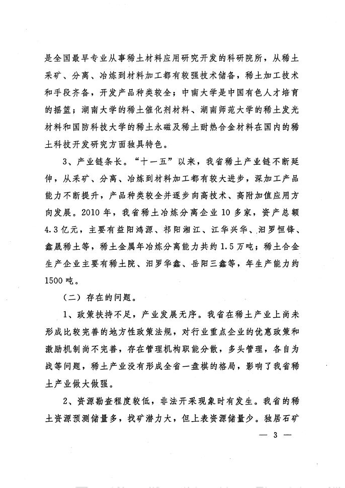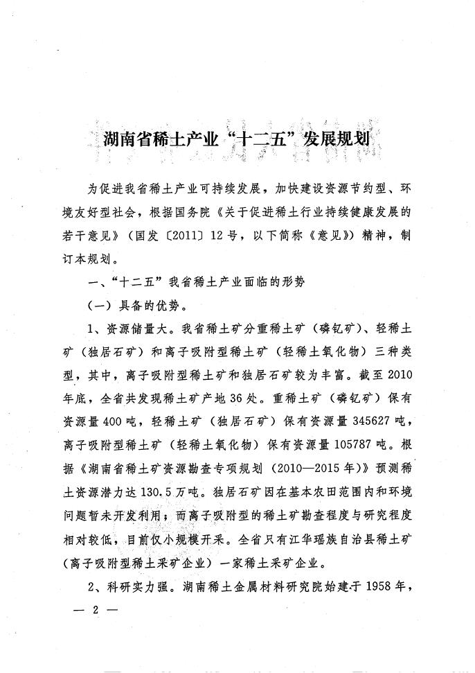 湖南省稀土产业“十二五”发展规划
