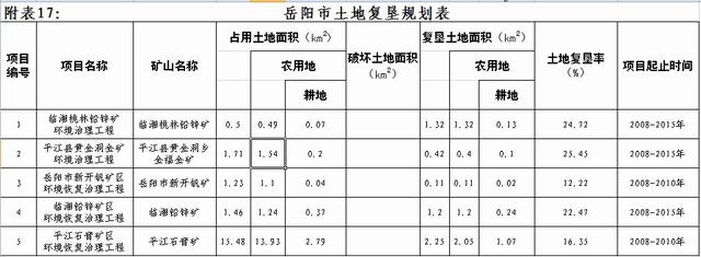 | 附表17 | 岳阳市土地复垦规划表 |