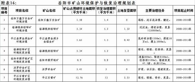 岳阳市矿山环境恢复治理重点工程规划一览表
