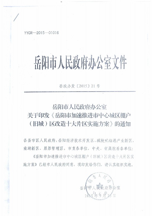 市人民政府办公室关于印发《市加速推进市中心城区棚户改造十大片区实施方案的通知》