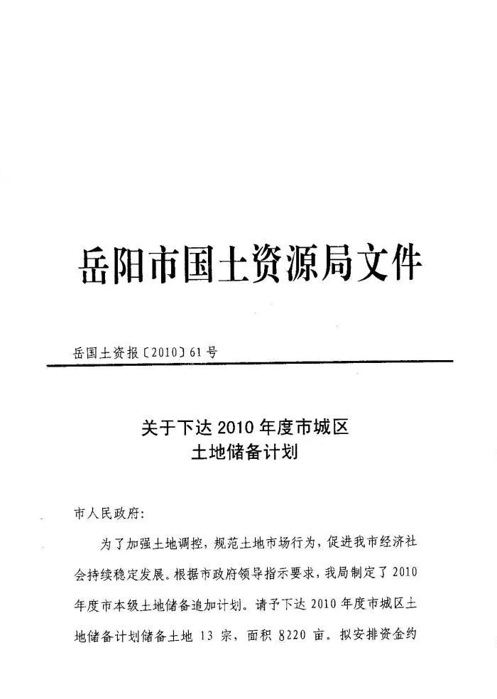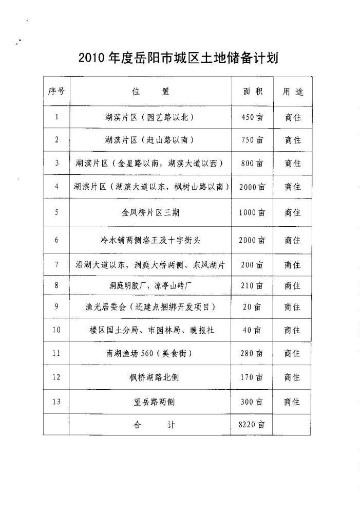 2010年度市城区土地储备计划