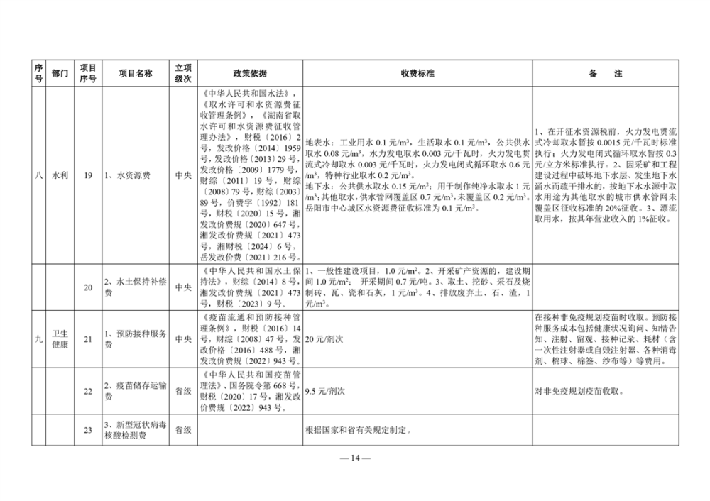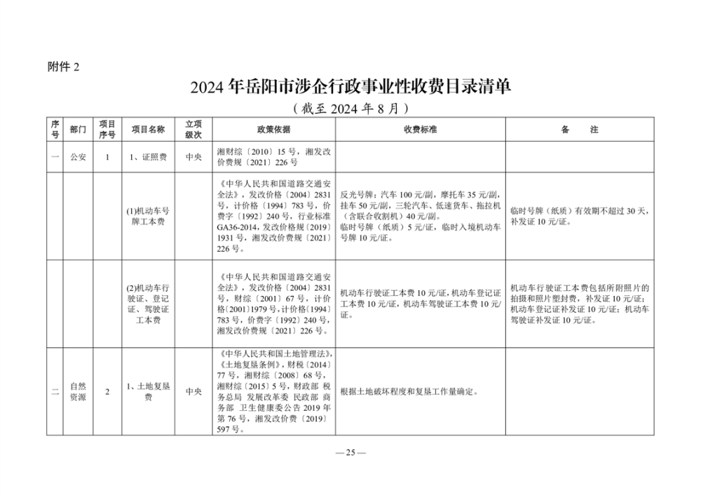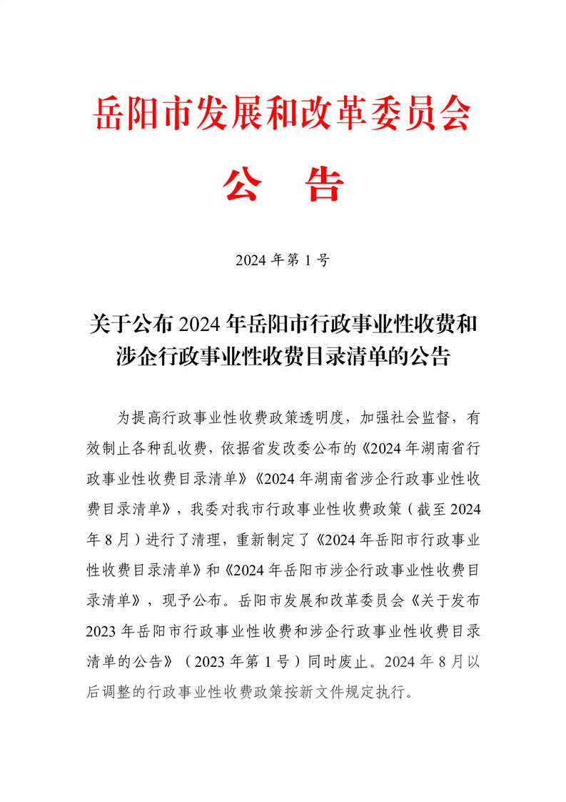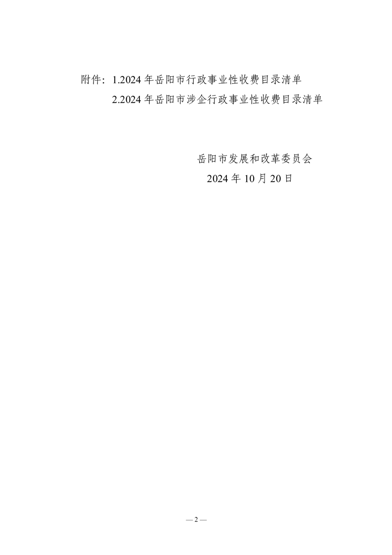 2024年岳阳市行政事业性收费和涉企行政事业性收费目录清单