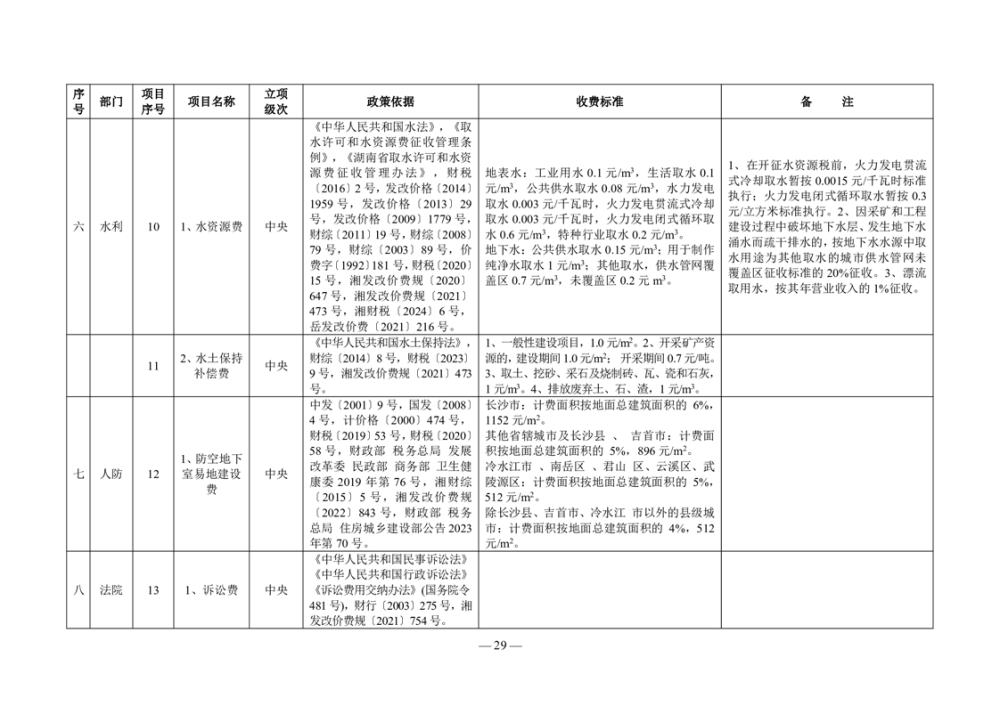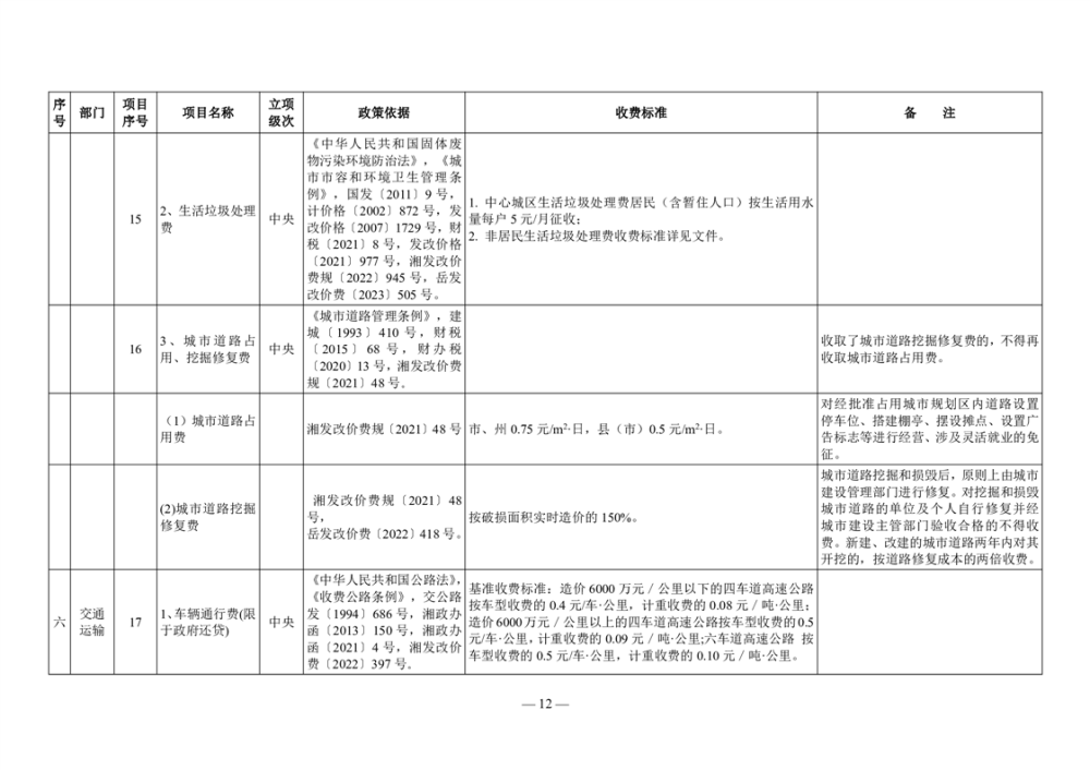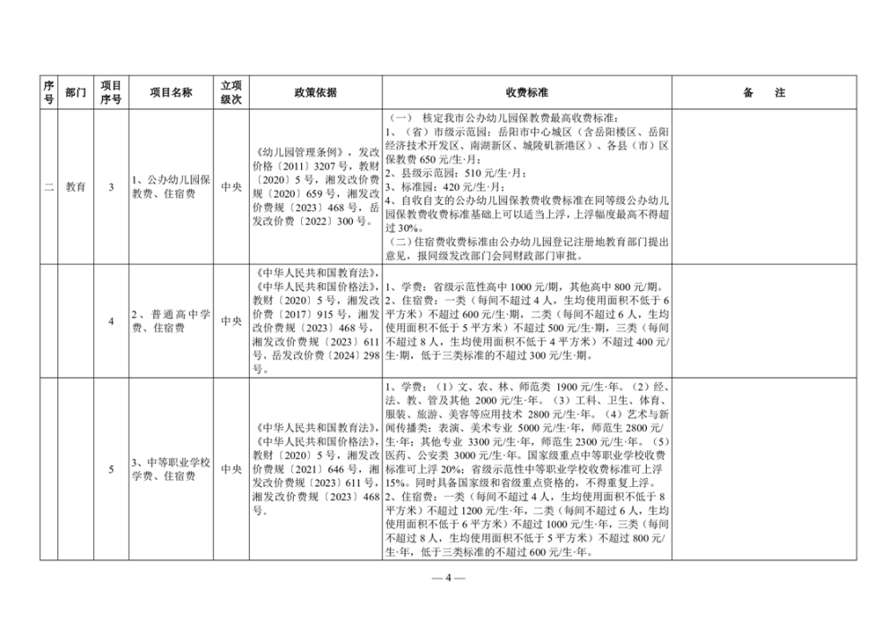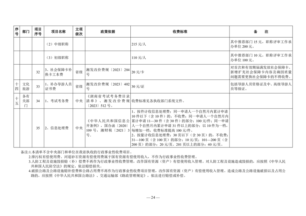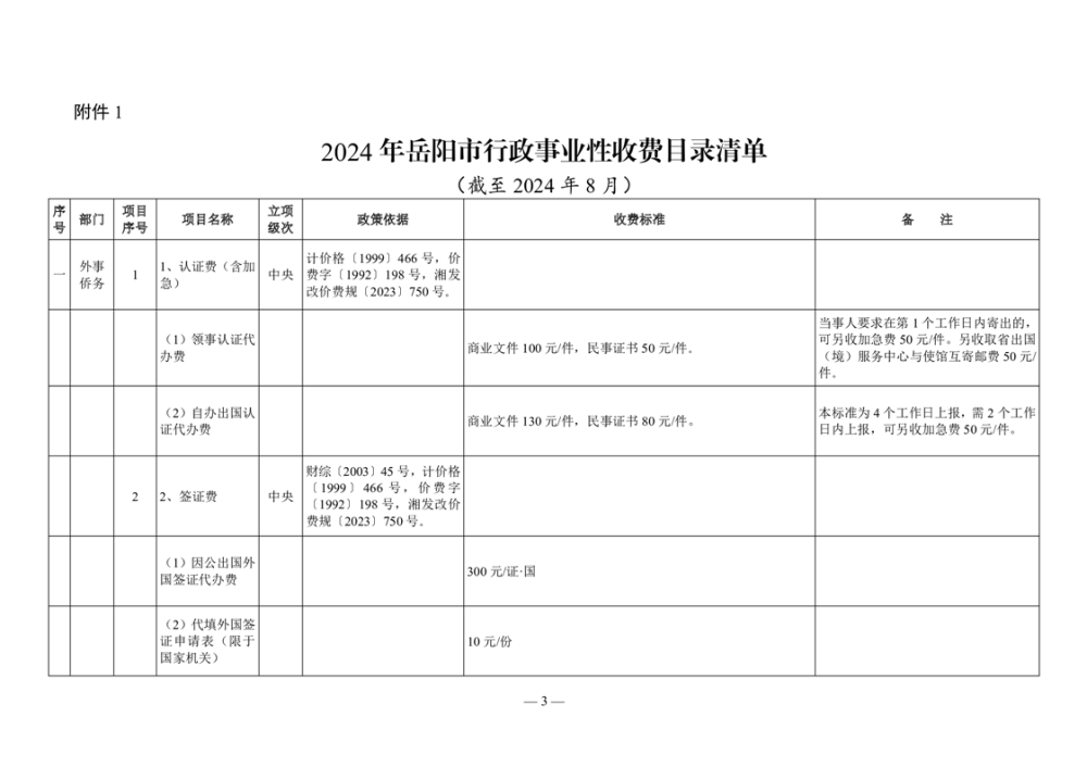 2024年岳阳市行政事业性收费和涉企行政事业性收费目录清单