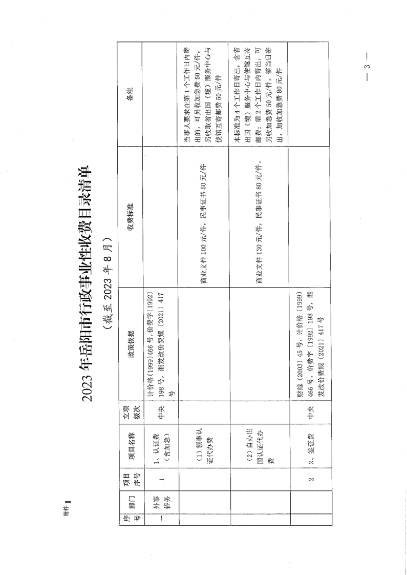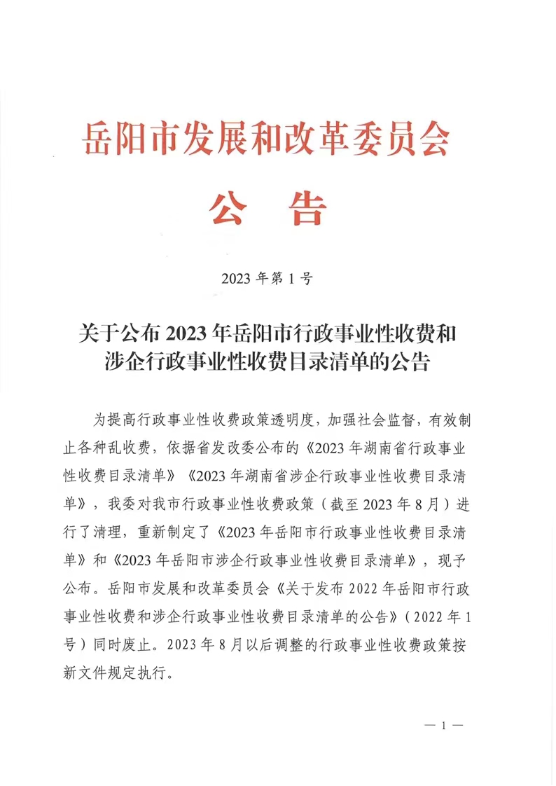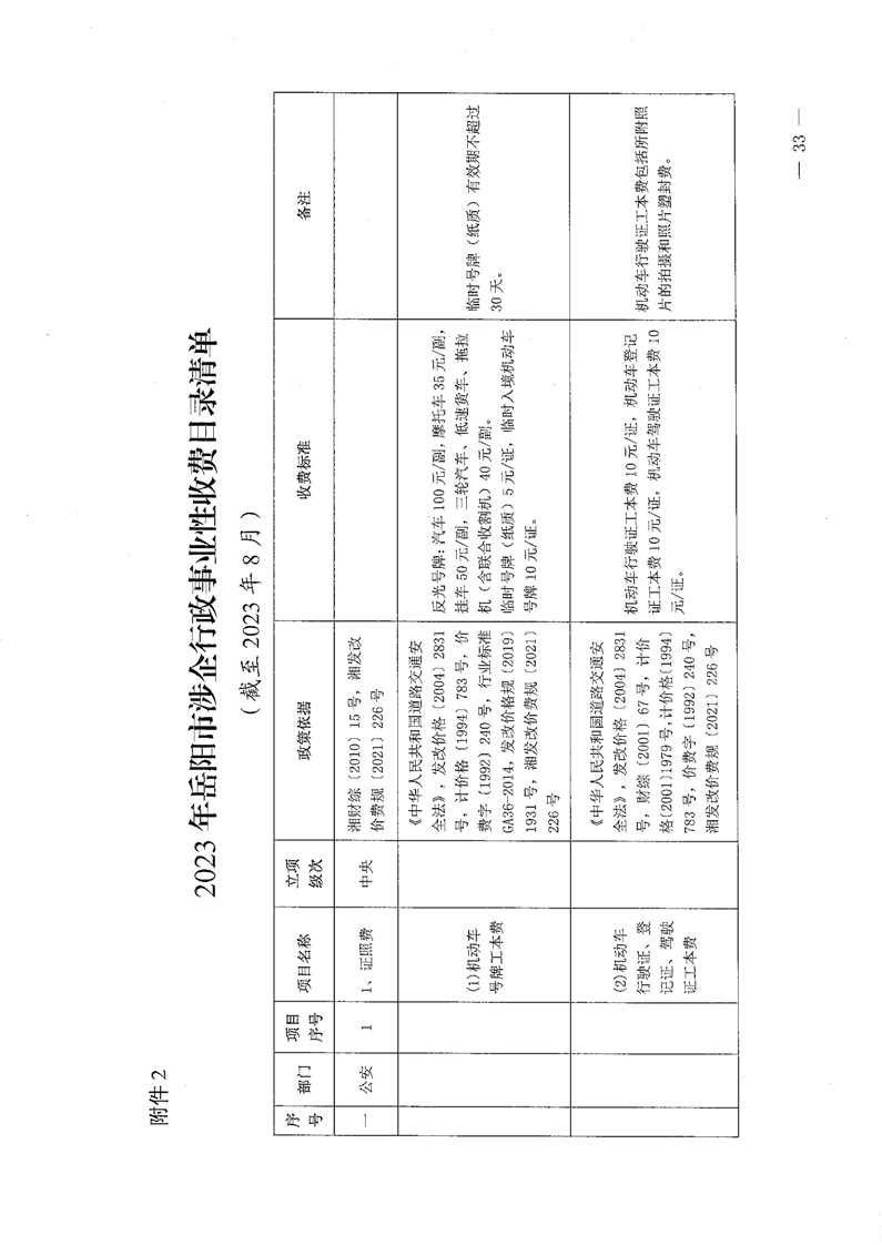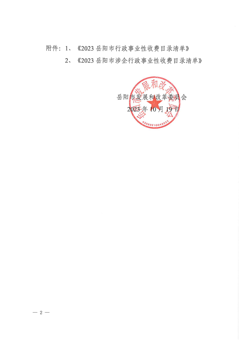 2023年岳阳市行政事业性收费和涉企行政事业性收费目录清单