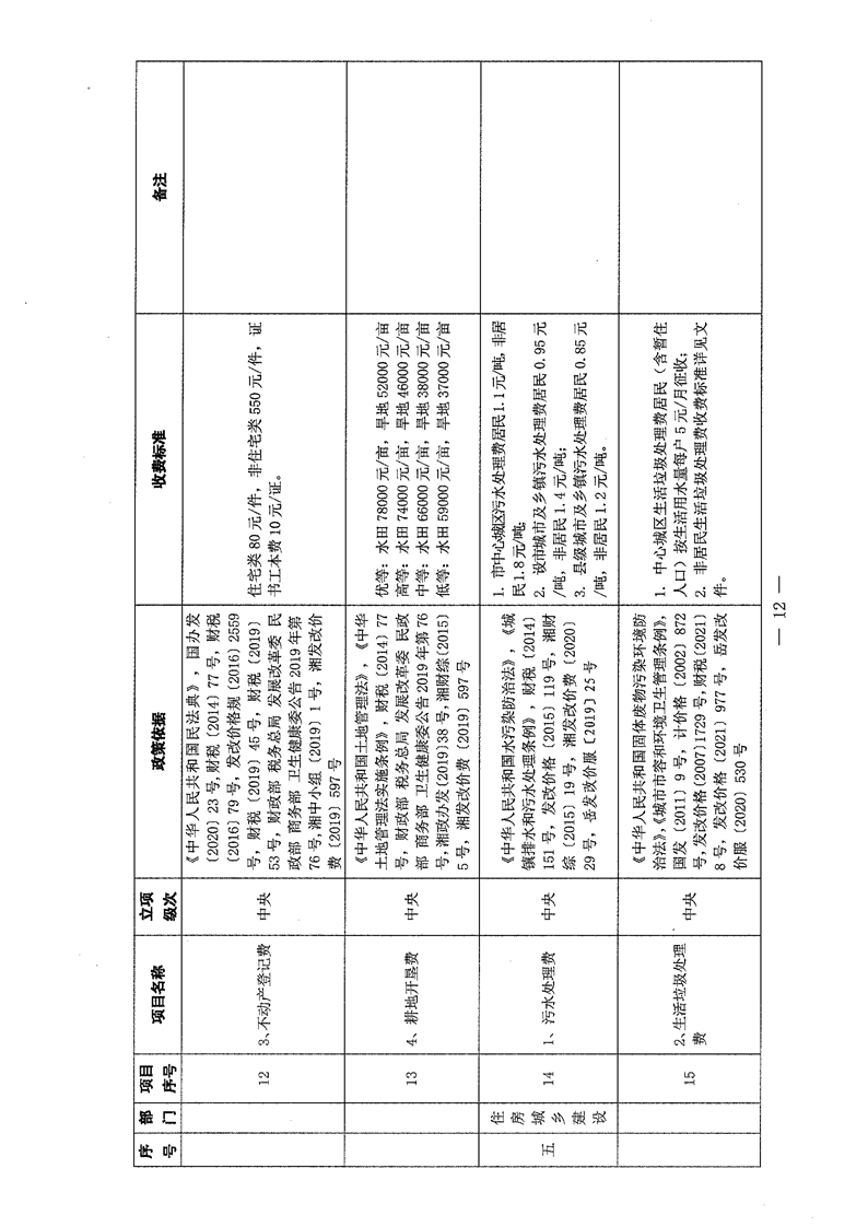 2022年岳阳市行政事业性收费和涉企行政事业性收费目录清单