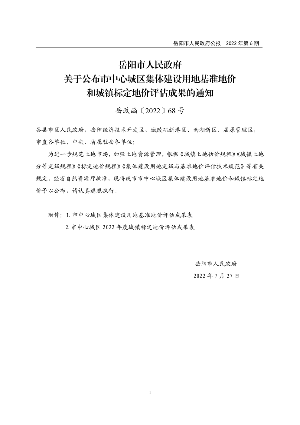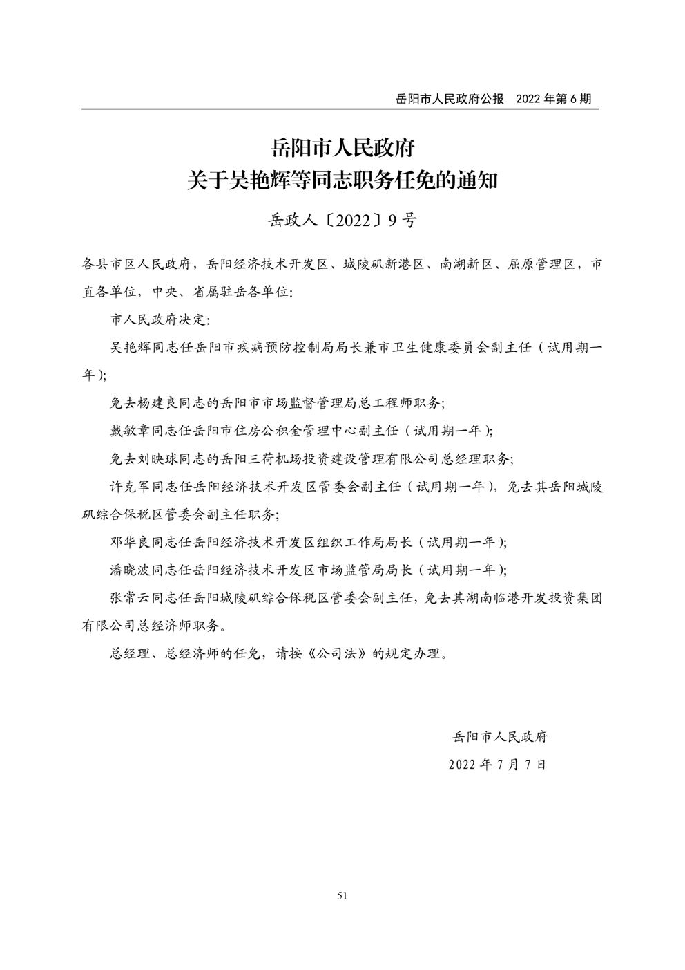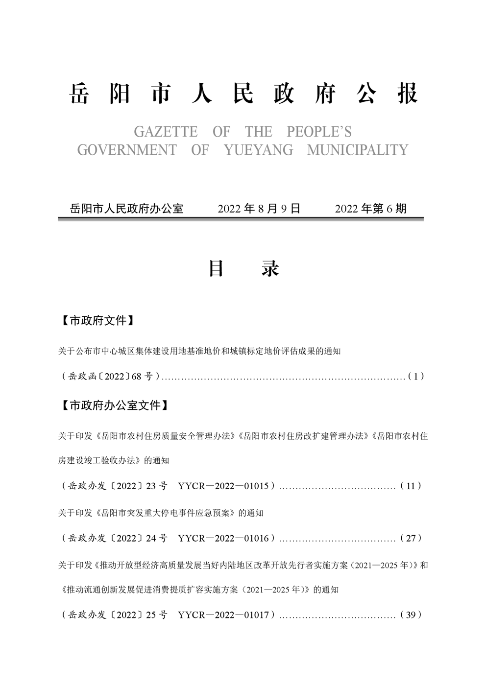岳阳市人民政府公报2022年第6期