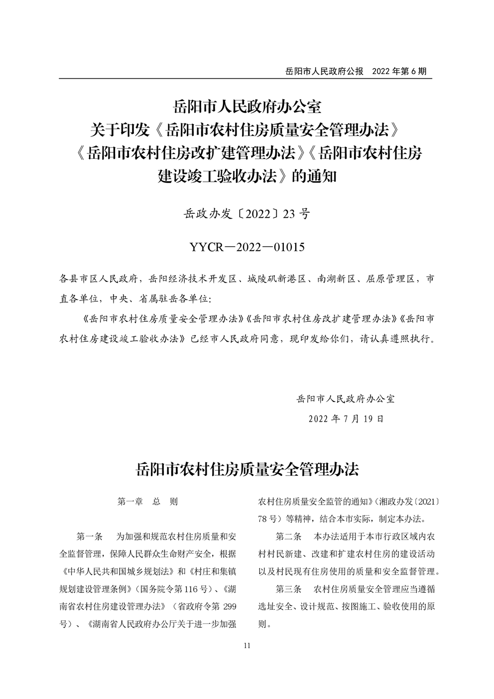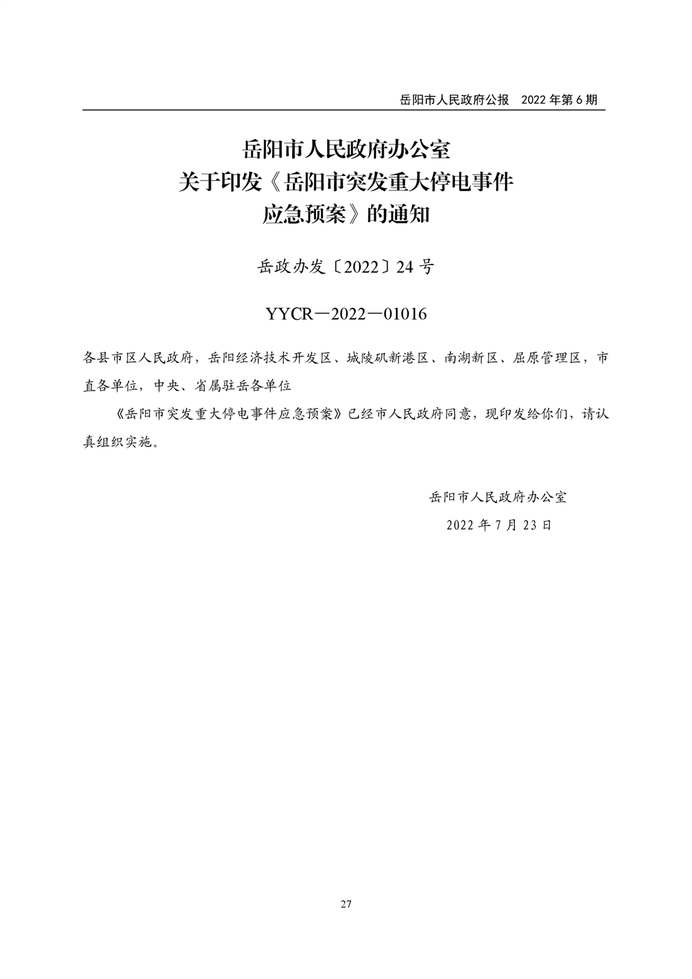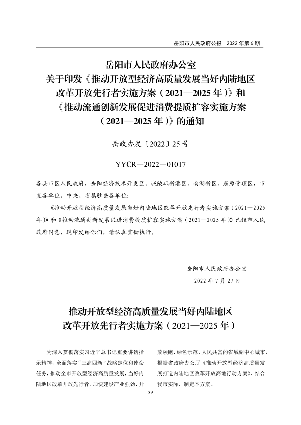 岳阳市人民政府公报2022年第6期