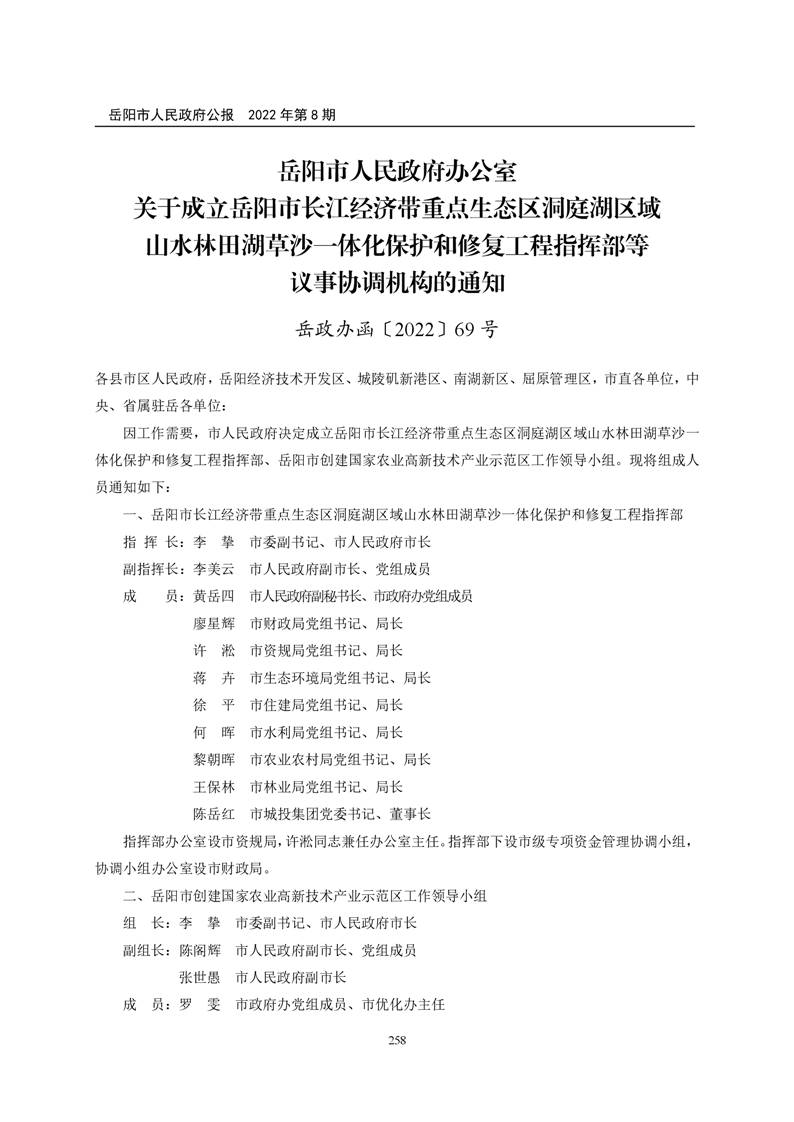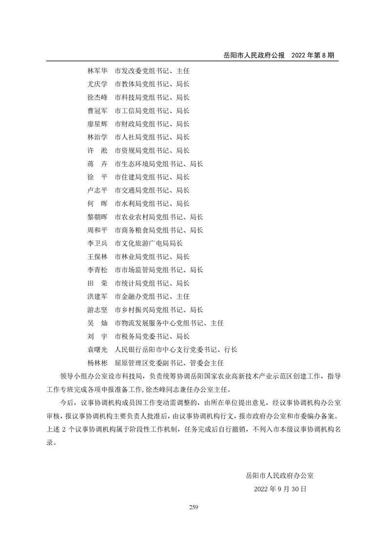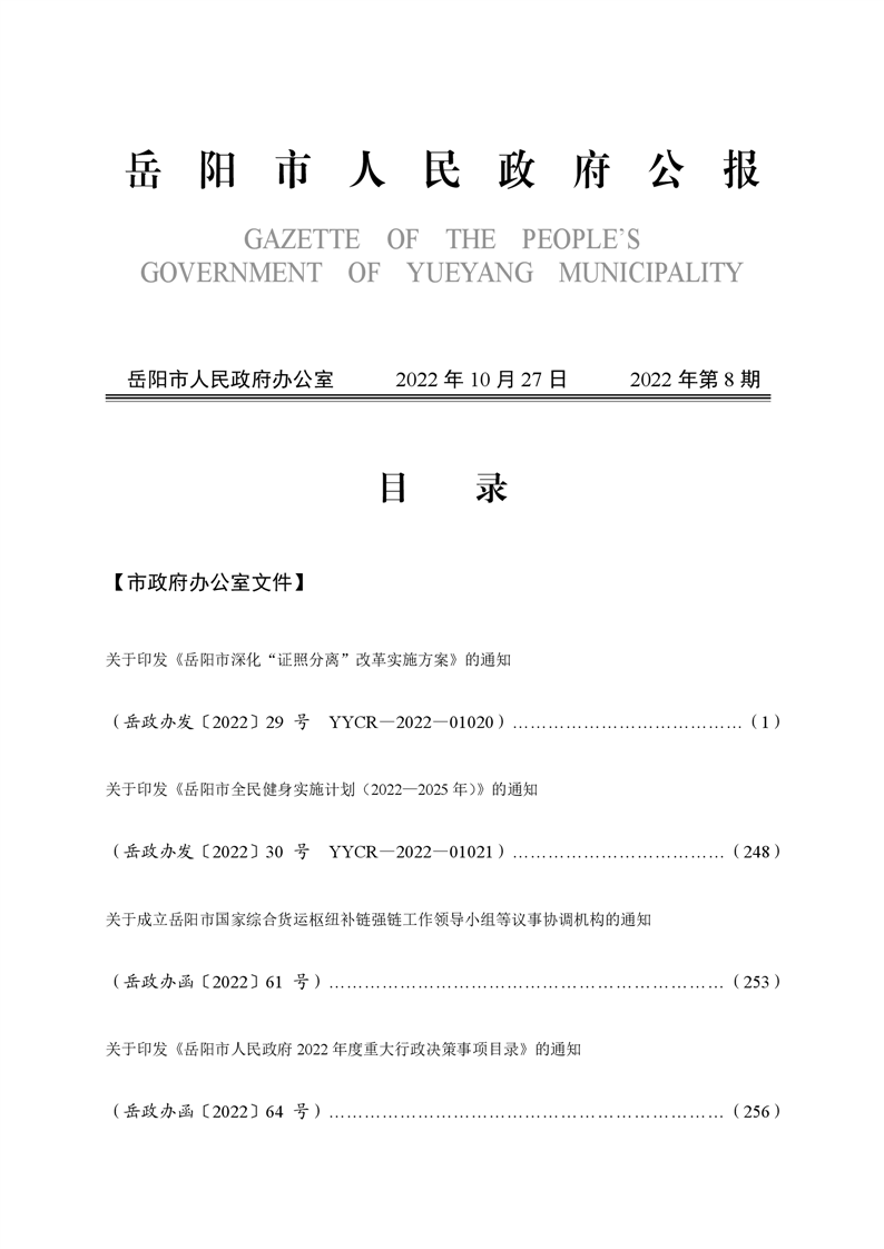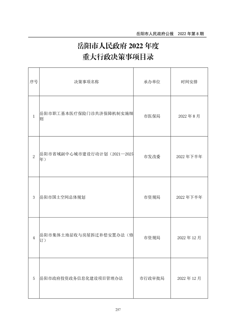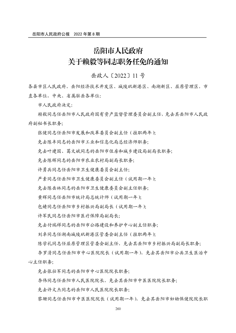 岳阳市人民政府公报2022年第8期