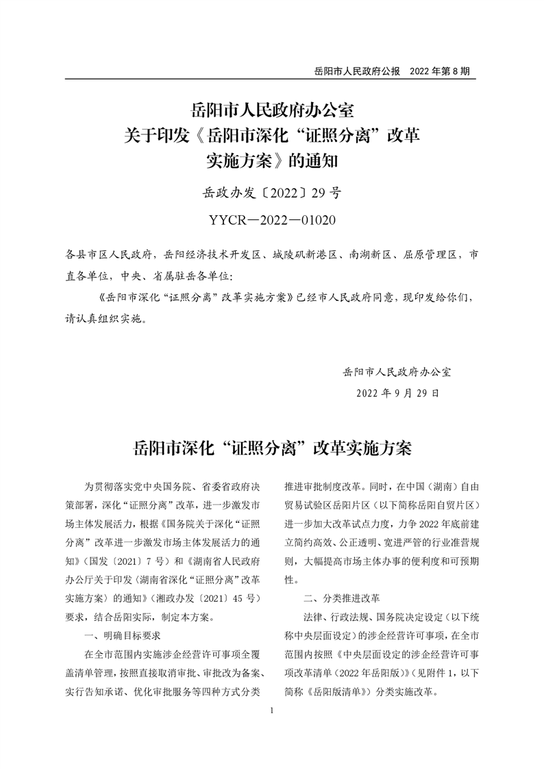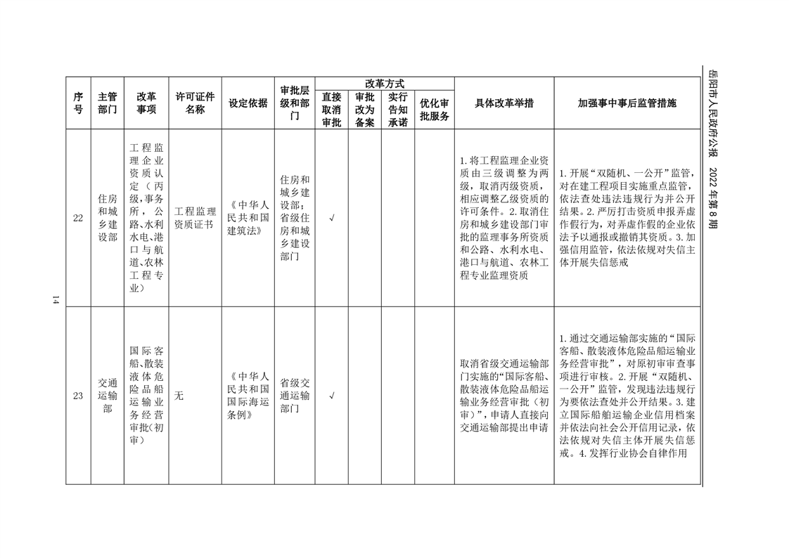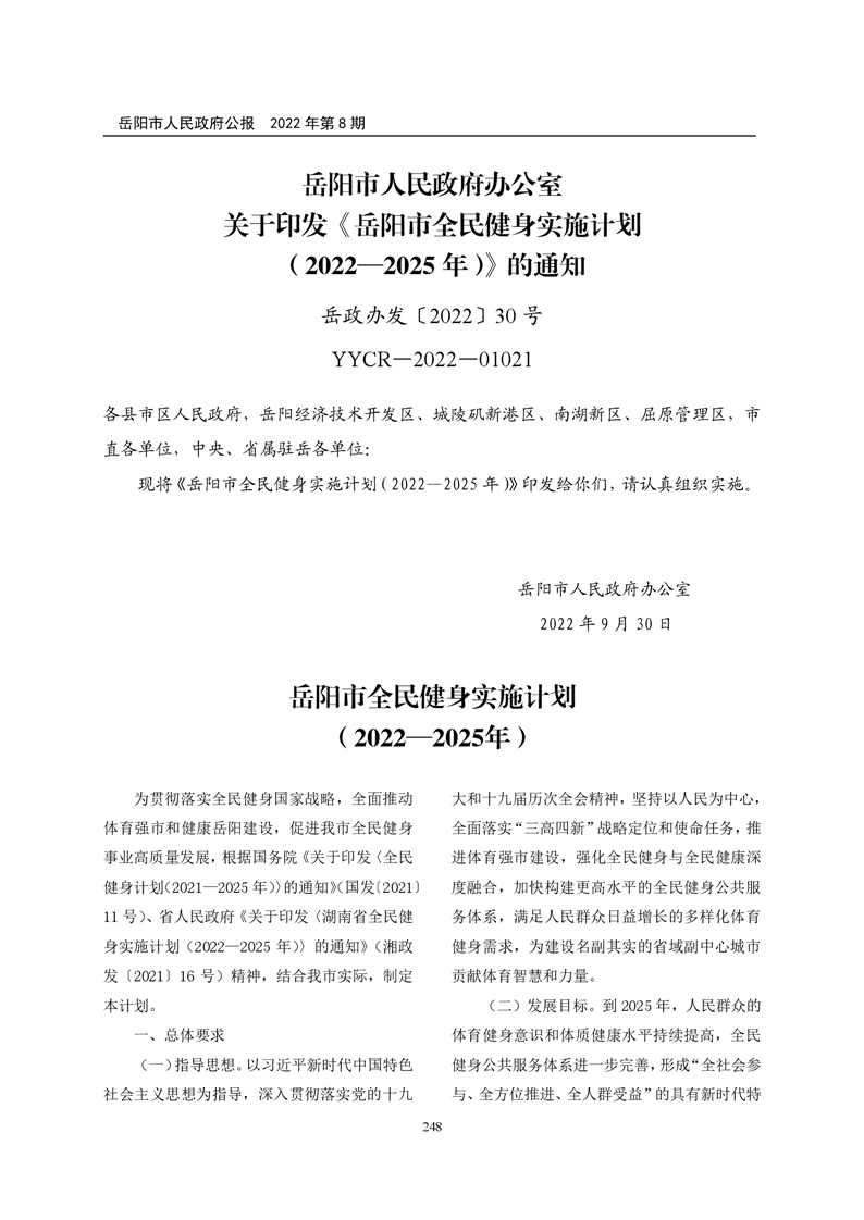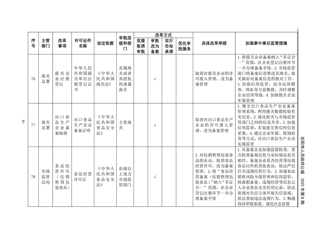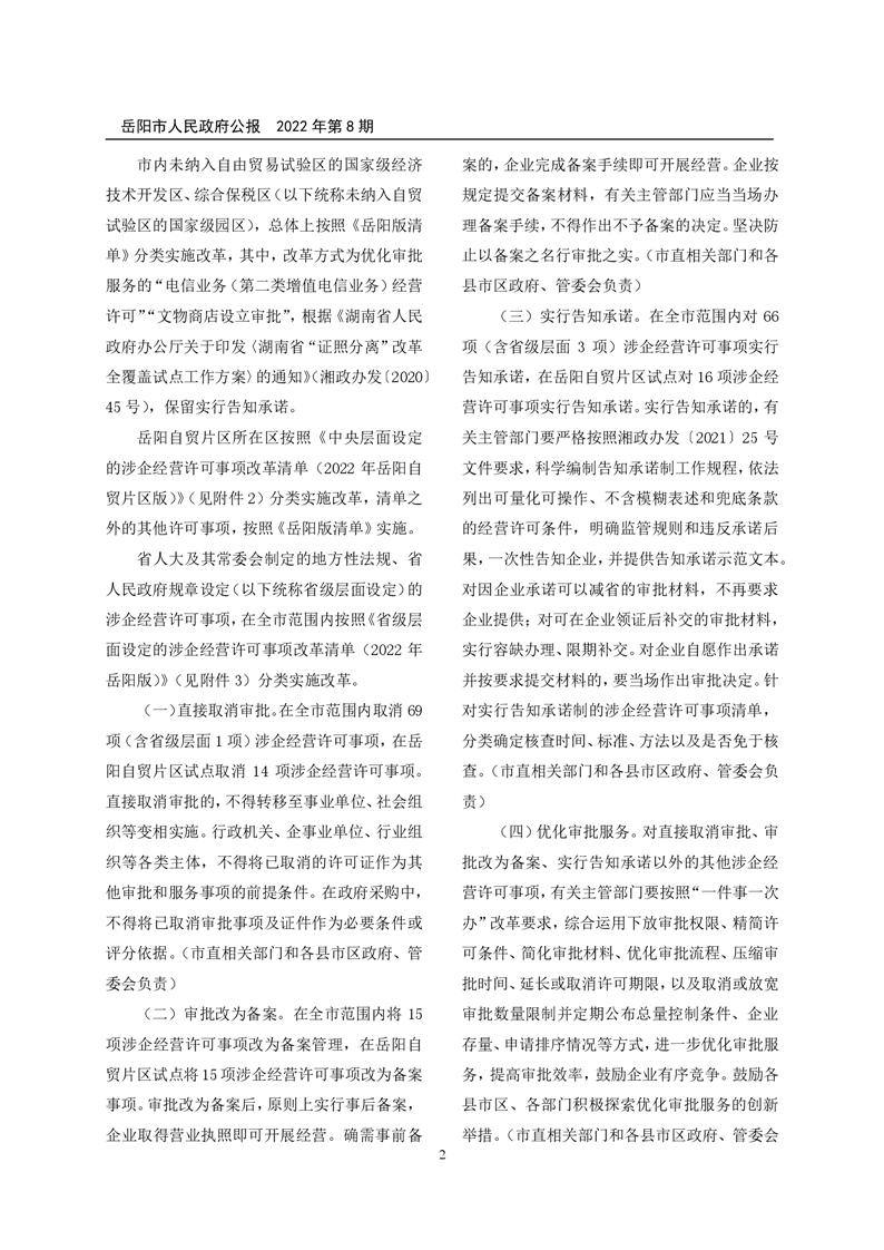 岳阳市人民政府公报2022年第8期