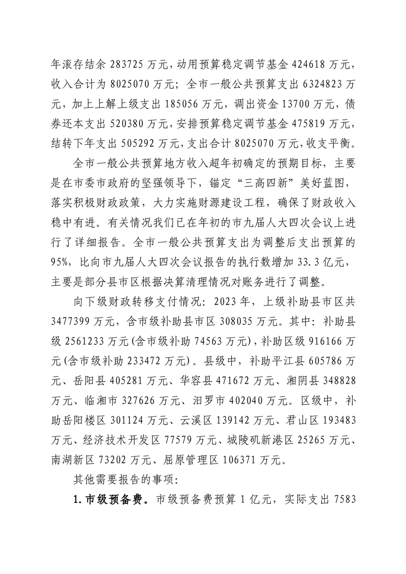 第一部分:关于岳阳市2023年财政决算草案和2024年上半年预算执行情况的报告(含市级汇总“三公”经费决算情况、含市级及全市汇总举借债务情况说明)
