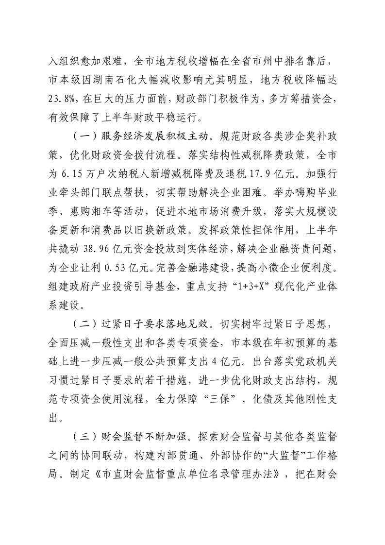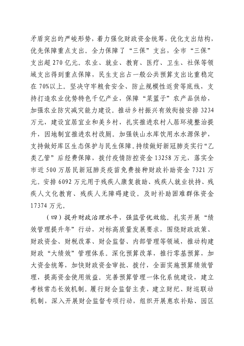 二、2023年预算执行效果及落实市人大决议情况