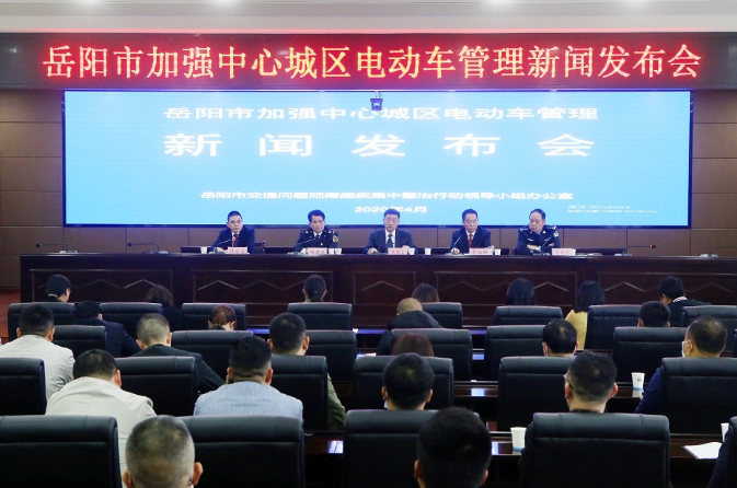 4月23日下午,市政府新闻办举行岳阳市加强中心城区电动车管理新闻发布会。